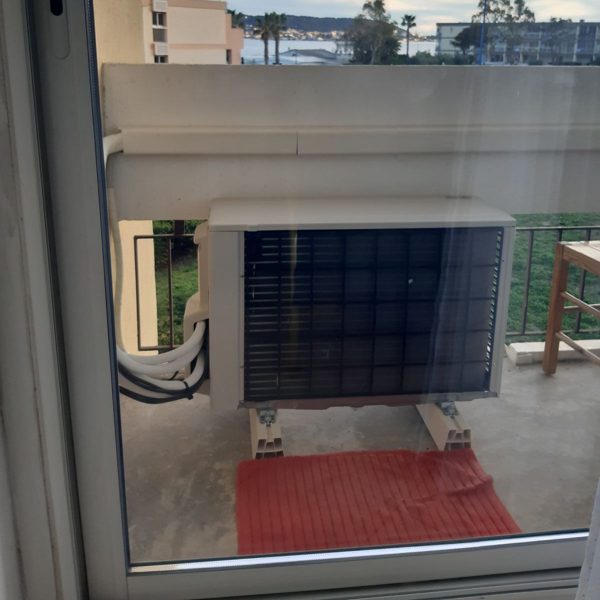 | le balcon de la chambre avec le groupe de climatisation | |