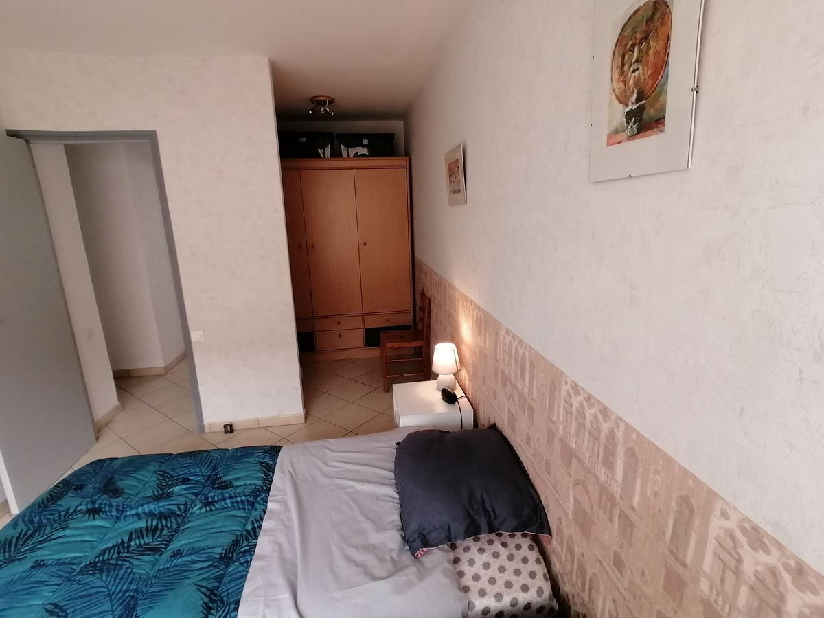 | la chambre avec un lit de 140 vue côté armoire | |