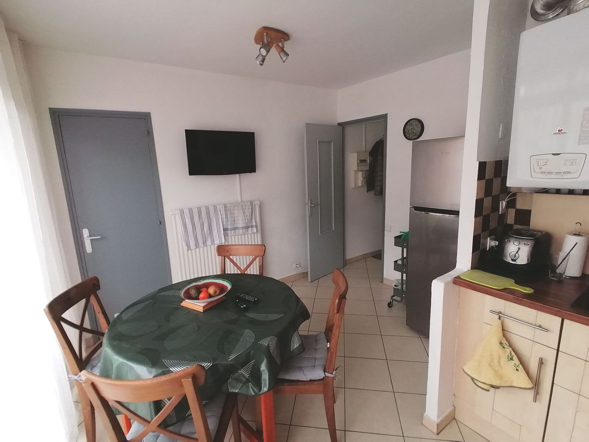 | le salon avec la TV orientée côté repas | |
